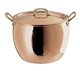 Copper 7-1/2 quart tall stock pot with lid. Created by the ruffoni family-owned atelier in the city of omegna italy, located in the italian alps region. The ruffoni family has made hand hammered professionall copper cook ware for decades and have combined their passion for craftsmanship and technology into the creation of hand-worked copper cookware. The result is a professionall cookware item that is a unique and splendid creation worthy for any kitchen and a proud place at your table. Ruffoni hand-hammered copper is set apart from other less pretigous copper items as a professional artisanal product that is hand-made and not mass-produced. 100-Percent copper with interiors lined with durable nonreactive tine. Over time copper develops a rich patina that does not effect the performance of the item. Ideal for gas and electric cooktops. Use of wood or plastic utensils will help to avoid scratching the lining. Protect the lining by no heating an empty pot above 450-Degree farenheit.
